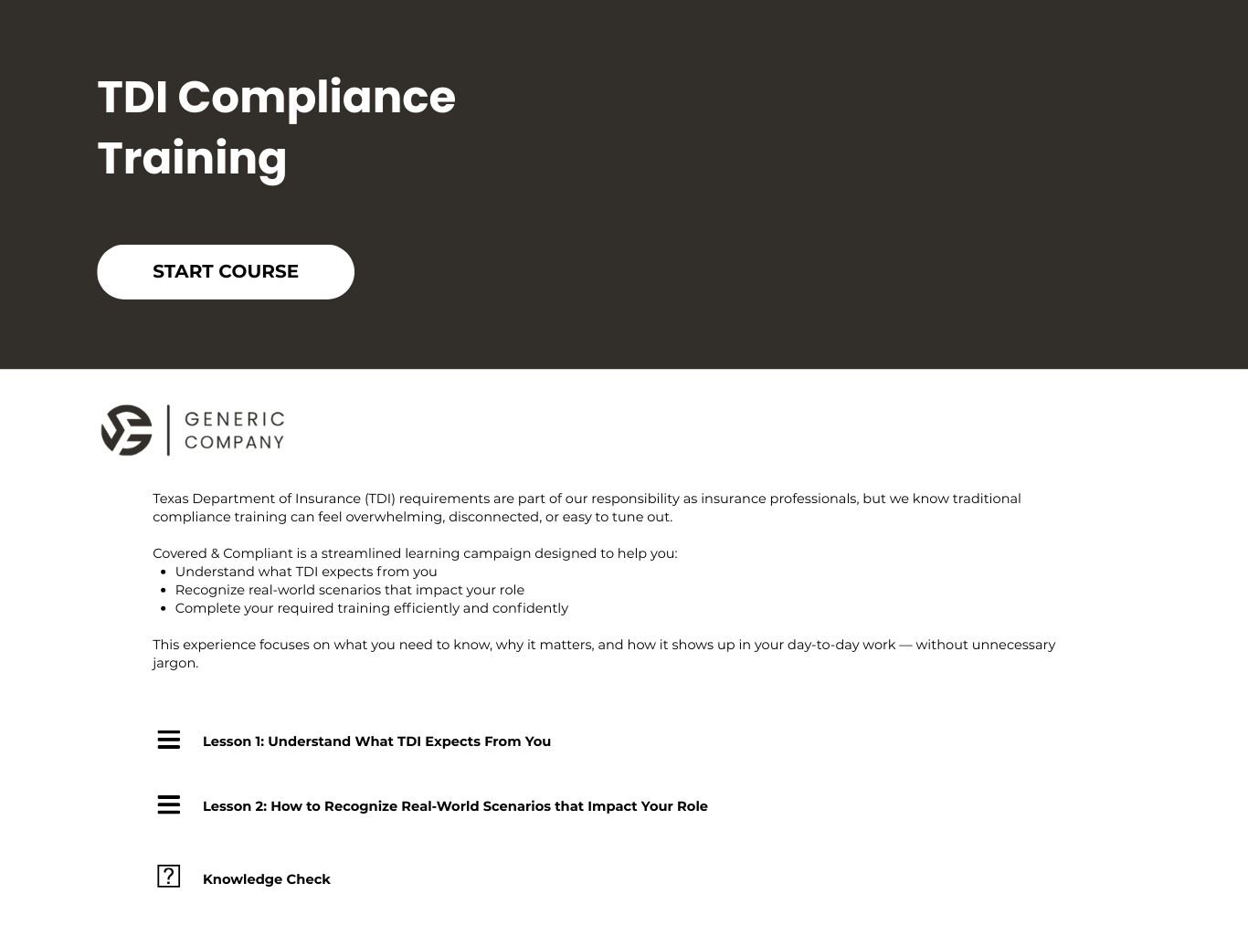 Mandatory compliance training is often perceived as time-consuming or low priority, leading to low engagement and delayed completion. This campaign was designed to support the launch and completion of required Texas Department of Insurance (TDI) training by making the experience feel clear, relevant, and manageable for employees.