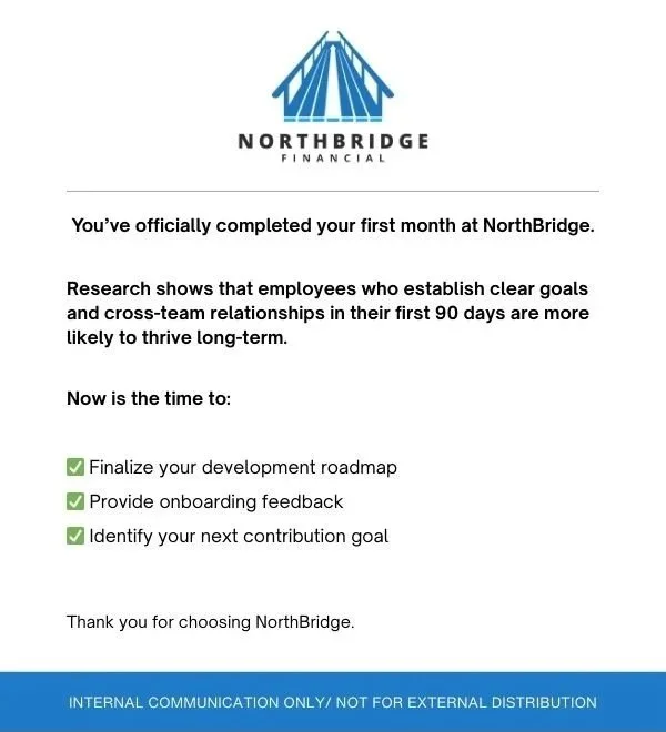 So instead of a one-week onboarding burst, this is a structured 90-day digital journey.